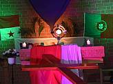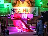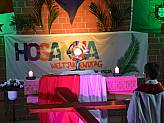 Schon am Nachmittag des Palmsonntag hatte das Hosanna-Team mit den Vorbereitungen in der Kirche begonnen. Liebevoll wurde dekoriert und aufgebaut, damit die Teilnehmenden und die Zuschauer in das Weltjugendtagsfeeling eintauchen konnten, das diese Veranstaltung ausmacht. Denn Hosanna ist der „kleine“ Weltjugendtag, der zwischen den großen, internationalen Weltjugendtagen im Bistum Fulda gefeiert wird.