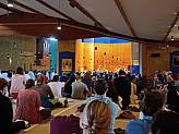 Am 14. August packten 30 junge Menschen aus dem ganzen Bistum zwar nicht ihre sieben Sachen, aber vier Bullis bis unters Dach voll, um gemeinsam eine Woche in Taizé zu verbringen. In 2022 stand nämlich ein neues Abenteuer ins Haus: Selbständig ohne schicken Reisebus nach Frankreich fahren. Nachdem all die neuen Schritte wie Maut zahlen und in einem sehr belebten und vollen Taizé ankommen geschafft waren, erwarteten die Gruppe wie jedes Jahr sechs Tage gefüllt mit internationalen Eindrücken, spannenden Bibeleinführungen, gemeinsamen Aufgaben des Alltags und nicht zuletzt jeder Menge Spaß. Zu diesen Aufgaben zählten unter anderem Singen im Chor, Abwaschen beim "Big Washing Up", Essen verteilen und vieles Weitere. Die zahlreichen Regengüsse genau zur Essenszeit konnten der Gruppe nichts anhaben. Stattdessen wurden unter freiem Himmel die Wartezeiten mit Singspielen verkürzt, in die sich die umstehenden Menschen jedes Mal einklinkten. So konnte man schon von Weitem die Gruppe des Bistum Fulda erkennen: Wo es laut war, wo gesungen wurde, wo die schicken weißen Jutebeutel aus der Menge aufblitzten, die es diesmal als Giveaway gab, dort waren unsere Leute zu finden. Traditionell am Mittwochnachmittag zum Tee gab es ein Treffen mit dem deutschen Bruder Philipp, welcher sich den zahlreichen Fragen der Gruppe stellte und uns mit der einen und anderen Antwort unerwartet zum Lachen brachte. So verging die Woche wie im Flug und am 20. August nach der Lichterfeier, bei der die Osternacht nachempfunden und das Feuer der Osterkerze in der ganzen Kirche von den anwesenden Kindern an jede Person durch lange dünne Kerzen weitergegeben wird, hieß es Abschied nehmen, alle Kräfte sammeln und in die Nacht hinein Richtung Deutschland losrollen. Am Sonntagmorgen beziehungsweise Mittag kamen dann auch die letzten Teile der Gruppe wohlbehalten wieder in ihrem jeweiligen Heimatort an. Das Team der Reiseleitung bedankt sich für die eindrucksvolle, witzige, liederreiche und unvergessliche Zeit und freut sich schon auf die nächste Fahrt in 2023.