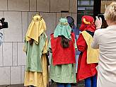 Das Bistum Fulda wurde von Kindern aus der Pfarrgemeinde St. Anna in Somborn, Freigericht, vertreten. Begleitet von Rebecka Schneider und Pfarrer Johannes Wende hatte sich die Gruppe bereits um 6:30 Uhr getroffen, um sich auf den Weg nach Wiesbaden zu machen. Vor dem Empfang wurde noch einmal kurz der Durchlauf geprobt, dann ging es los.
