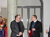 Zum Schluss brachten die Sternsinger aus dem Bistum Mainz den traditionellen Segen 20 * C + M + B + 23 (Christus mansionem benedicat – Christus segne dieses Haus) am Eingang zur Staatskanzlei an.