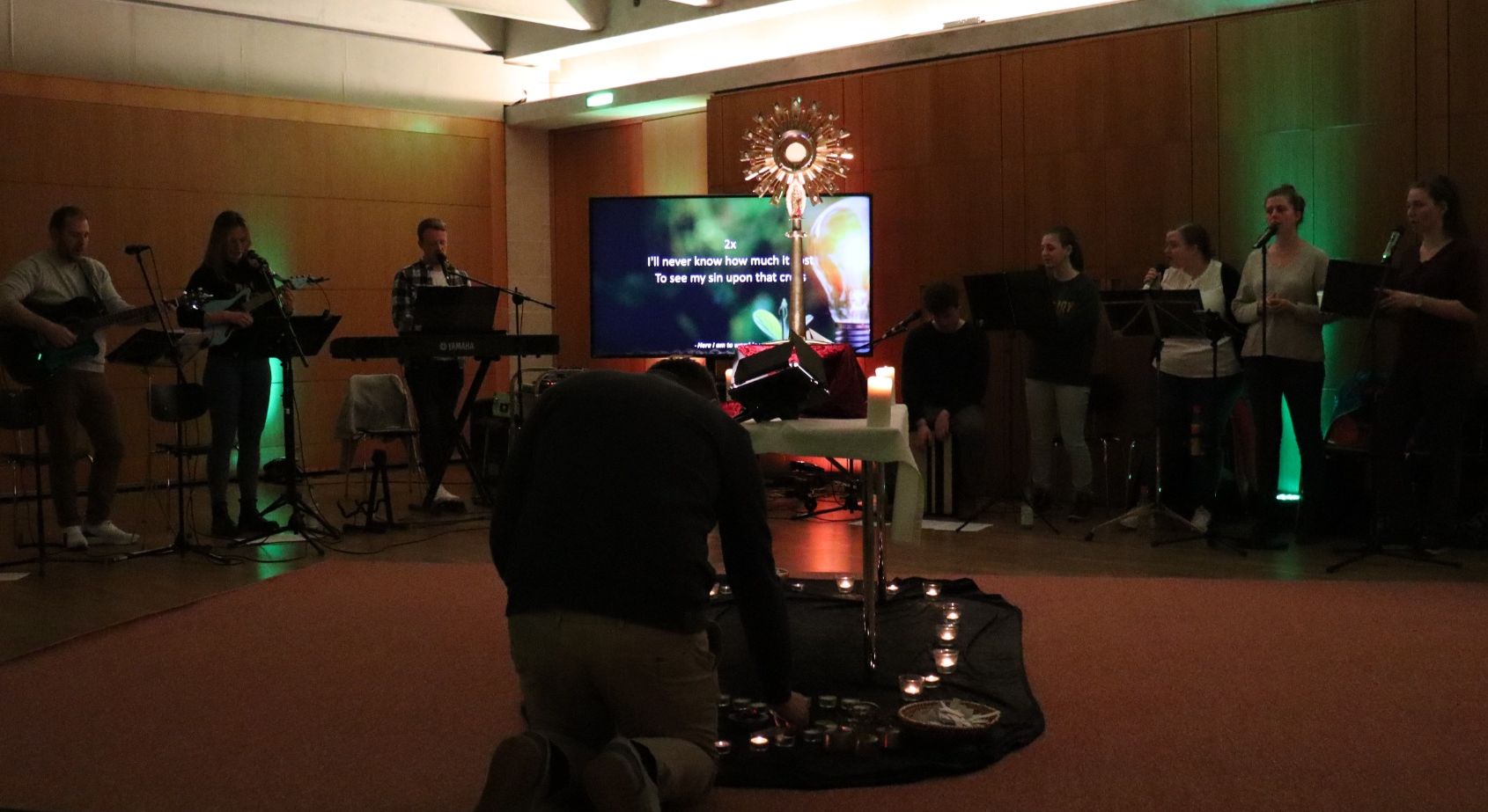 Danach war der Worshipteil eröffnet: Während der eucharistischen Anbetung gab es die Möglichkeit, in Stille, mit modernen christlichen Songs, durch Bibelstellen, das Auflegen von Weihrauch oder das Anzünden einer Kerze Zeit mit Gott zu verbringen. Außerdem konnte man zur Beichte gehen oder das Gespräch mit einem Priester suchen.