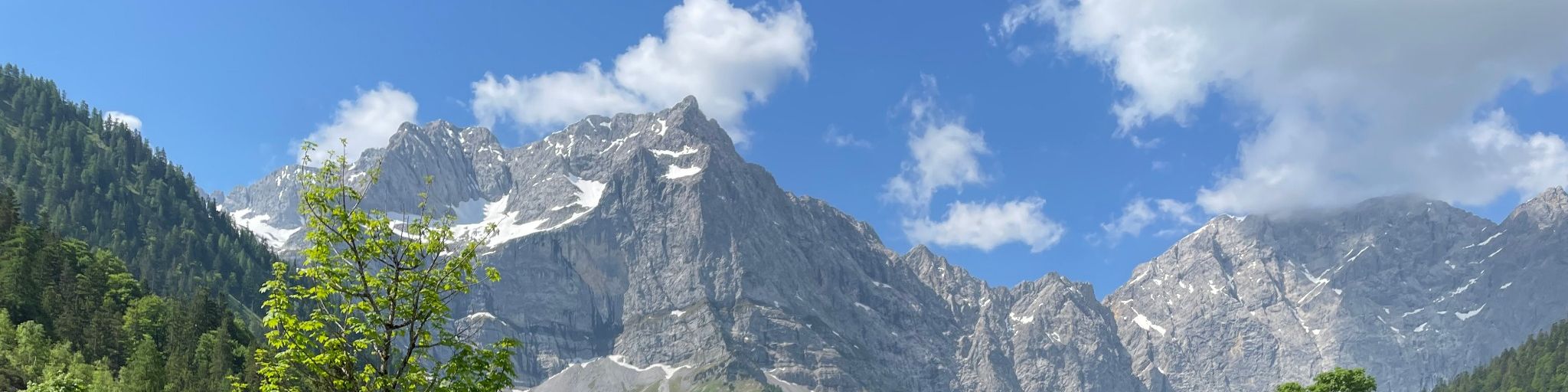 Am nächsten Morgen ging es dann Richtung Süden weiter in den östlichen Teil des Karwendelgebirges. An der Gramai Alm konnte pünktlich um 10:00 Uhr der Aufstieg zur ersten Hütte starten. Bis auf wenige Regentropfen am Gipfelkreuz des Gramai Hochlegers hat das Wetter perfekt mitgespielt, was in den Bergen keine Selbstverständlichkeit darstellt. Die erste Etappe wurde mit wundervollen Ausblicken, Kuhglockengeräuschen, einem deftigen Abendessen und einem lustigen gemeinsamen Abend mit Gitarren-Musik auf der Hütte entlohnt.