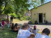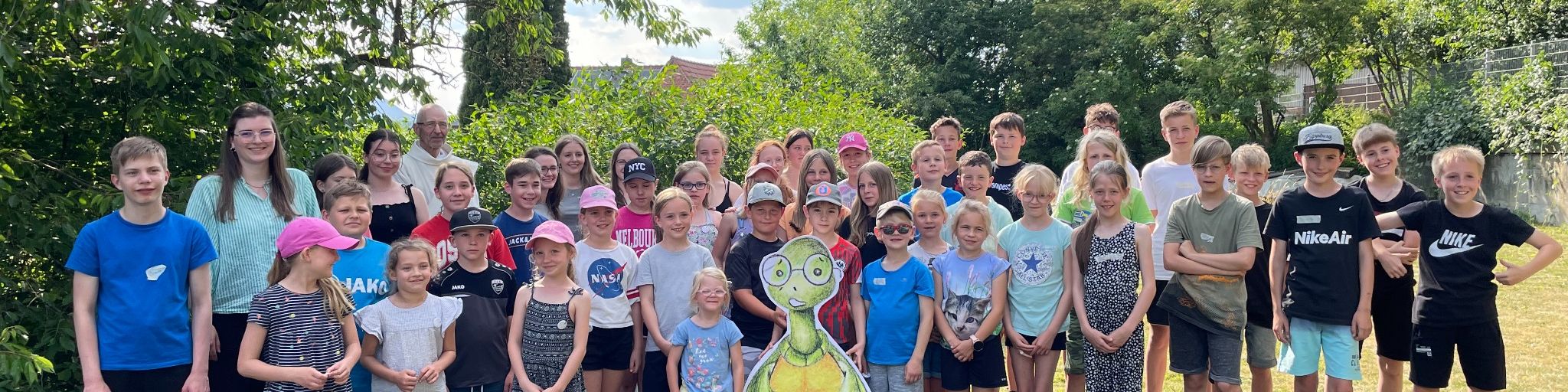 Am 17. Juni 2023 fanden sich ca. 40 Messdienerinnen und Messdiener aus den Gemeinden Kerzell, Hattenhof und Büchenberg im Gemeindehaus Hattenhof ein, um gemeinsam den Minitag Mobil zu erleben. Unter dem Leitsatz "Suche den Frieden und jage ihm nach" verbrachten alle Kinder einen ereignisreichen Tag. Begleitet wurden sie dabei vom "Kleinen Frieden" in Form einer Schildkröte. Neben einer interaktiven Kinderkatechese stand als Highlight des Tages das Chaos-Spiel auf dem Programm. In fünf Gruppen traten die Kids gegeneinander an, auf dem Gelände versteckte Zahlenkärtchen zu finden und damit verbundene Aufgaben rund um die Themen MessdienerIn sein und Gemeinschaft zu absolvieren. Trotz des heißen Wetters konnten sich alle zwischendurch dank des Mitbring-Buffets der Eltern und ehrenamtlichen Helfenden mit Obst, Gemüse und Getränken stärken.