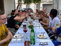 Anschließend haben wir zusammen Pizza im Zentrum von Tavira gegessen und mit anderweitigen Angeboten in der Stadt konnte die gesamte Gruppe der Langfahrenden den letzten Abend nochmal genießen.