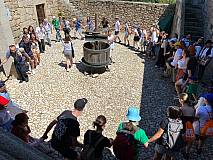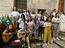 Nach dem Morning-Prayer und den ersten Workshops haben wir zunächst dem Bürgermeister von Tarouca einen Besuch abgestattet, der sogar für alle Pilgernde zur Begrüßung live Gitarre gespielt hat. Weiter ging es mit folklorischer Musik und traditionellen Tänzen, die uns direkt begeistert und angesteckt haben. Über den Nachmittag verteilt haben wir außerdem unser eigenes Bola-Brot zubereitet und gegessen, uns mittelalterliche Gebäude, wie z.B. die hier regional sehr bekannte Klosterkirche Sao Joao der Tarouca angesehen und die bergige Landschaft genießen können. Vor dem Abendessen in einer Schule gab es noch die Möglichkeit, am Fluss bei einem kleinen Picknick, Musik und Spaß zu entspannen. Zum Abschluss des Tages haben wir mit allen anderen Pilgernden zusammen Messe in der Stadtkirche gefeiert und diese mit der WJT-Hymne abgerundet