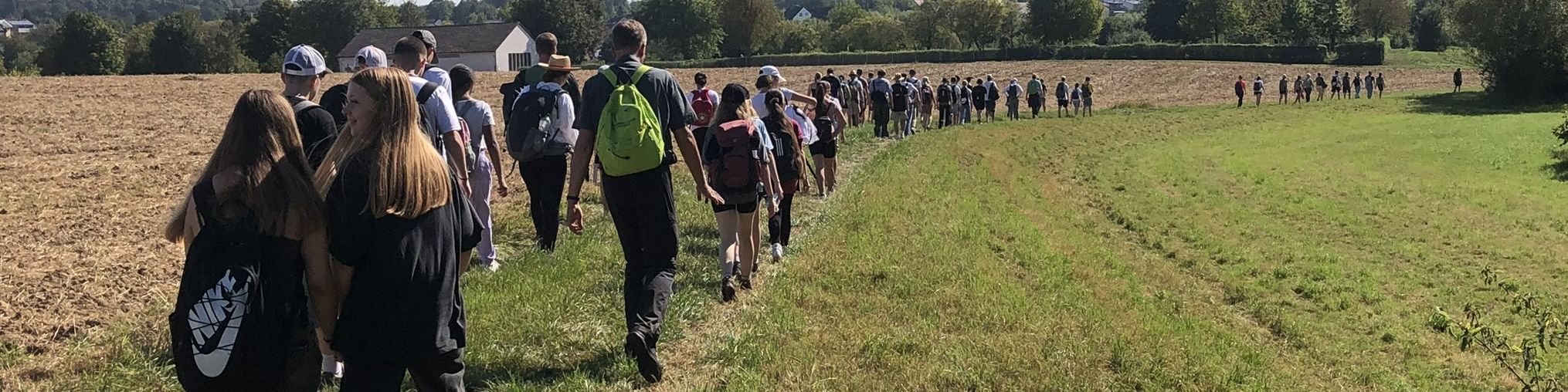100 Jugendliche unterwegs zwischen Glaubensfragen und neuen Freundschaften auf dem Pilgerweg von Bruchköbel nach Langenselbold.